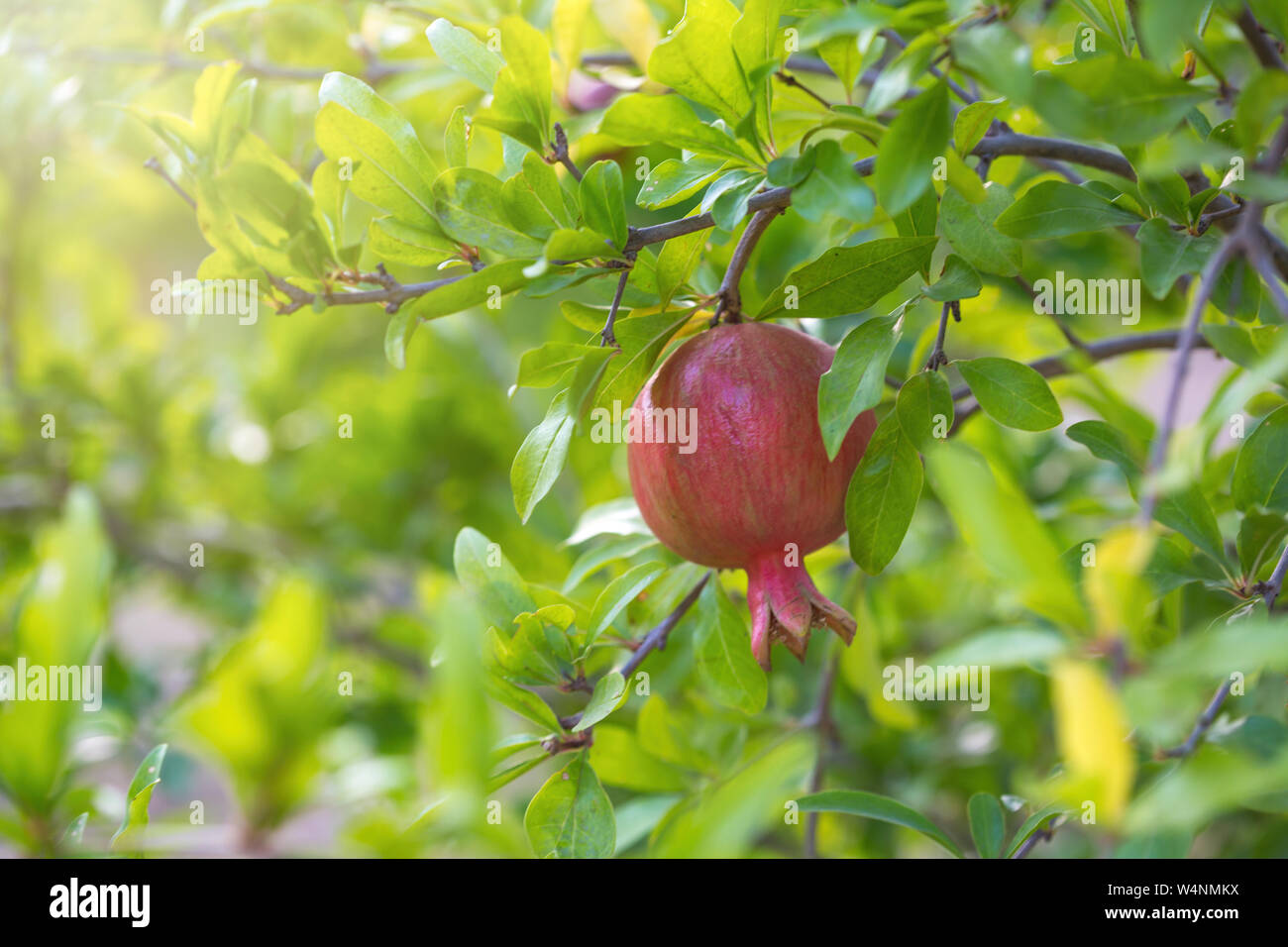 Ripe Pomegranate Tree Is Growing In Garden Garden Tree Branch With Fresh Pomegranate Stock Photo Alamy